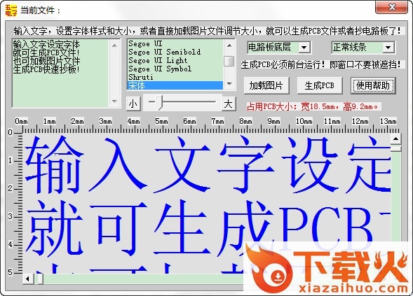你只需输入字符、设定字体大小,点击生成PCB文件即可!
