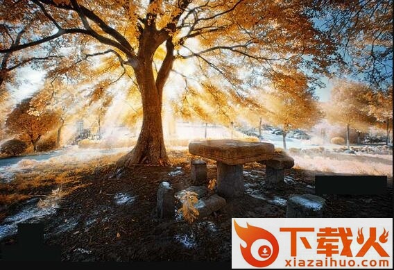 有光源从树缝中穿透而下,空气中有自然雾气,或者人为的雾气,最常见的就是燃放烟饼制造微粒让光源产生散射现象。后期制作:最好地上有斑驳的光影,通过树缝的大小拉伸及模糊滤镜处理光束,最后渲染上色。