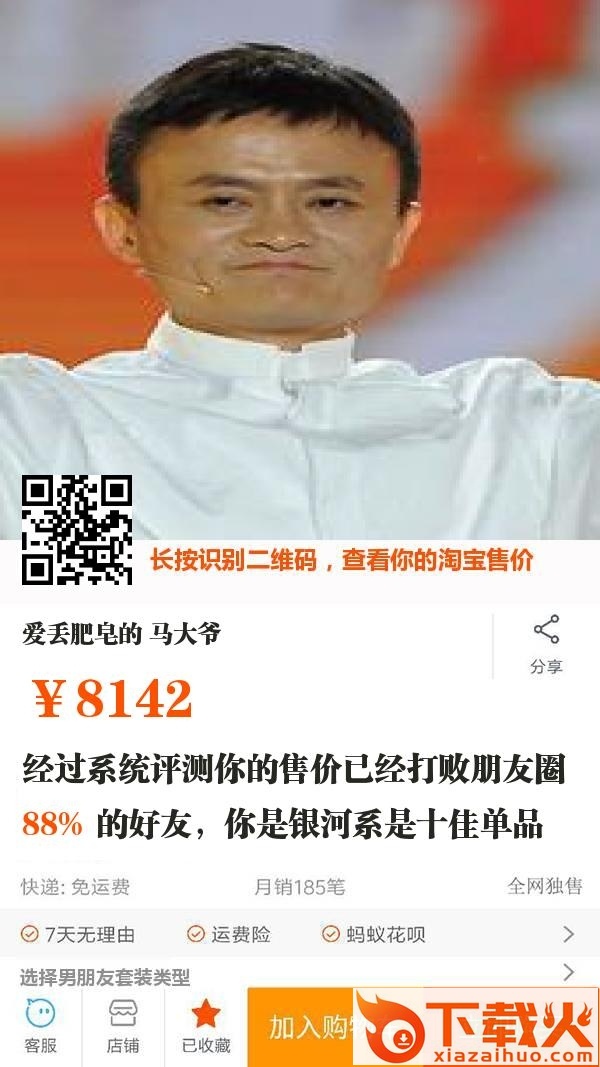 淘宝售价签是一款可以用于微信朋友圈的整蛊软件,通过发送好友活自己的照片,随机生成淘宝的宝贝展示界面,还有价格显示,看看你的颜值够不够高呢!