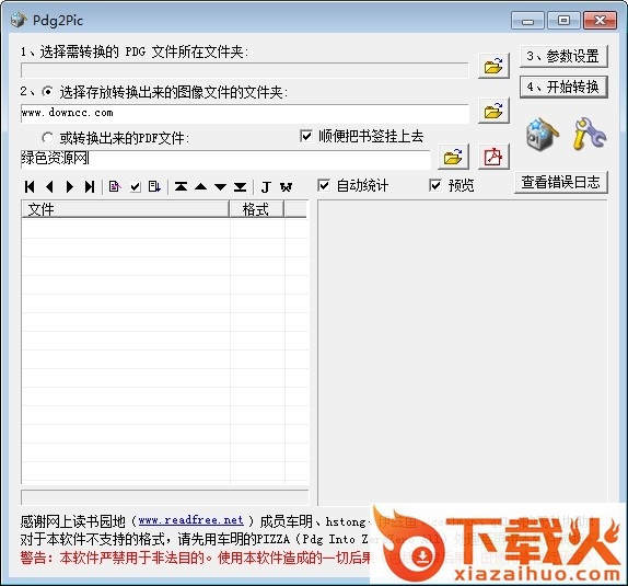 Pdg2Pic是一款专门为用户打造的pdg转pdf格式转换工具,操作简单,根据不同的文件格式,优化转换程序,可自定义图片的颜色、画质、亮度等,还可以按照一定的比例以及自定义数值调整图片大小,有需要者欢迎前来绿色资源网下载!