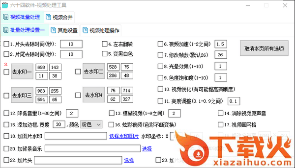 六十四视频处理工具是一款批量处理视频的软件,在其中用户可以按照批量的操作方式,去给每一个视频做出同样的修改,也可以尝试不一样的修改数值,但是相应的修改方面是同样的,只是修改的细节有所区别。...
