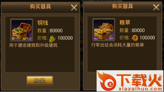 每次你可以花费10万粮草购买8万的铜钱,或者花费10万的铜钱购买8万的粮草。全部商品购买完后,可花费若干元宝刷新黑市中的所有商品。