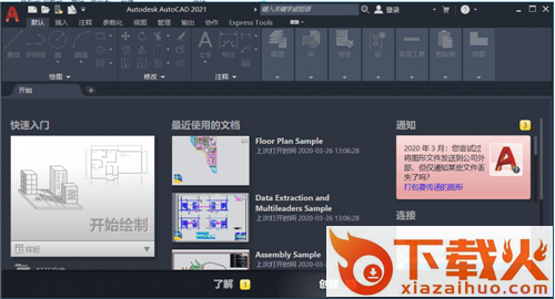 6、现在打开桌面上生成的软件图标,默认为英文,软件已经激活,所有功能可用,这就是小编带来的autocad2021安装教程;