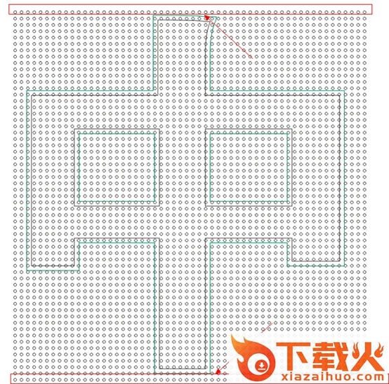 现在我们孔也排好了,接下来就是根据字的形状进行删减。因为我们在之前对圆进行了群组,所以要选中所有的圆,点击取消所有群组,快捷键为CTRL+U ,再选中不需要的圆,点Delete键进行删除,直至把全部不需要的圆都删完了,我们再对个别圆的位置进行调整,让圆的排列更符合美学原则,调整好圆的位置后我们的的字也就排好孔了。