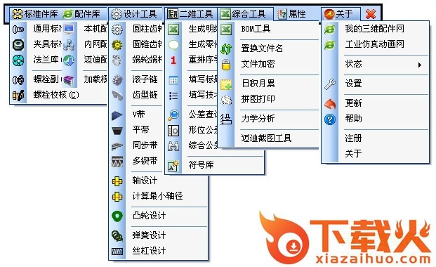迈迪三维设计工具集是一套三维辅助设计软件,面向机械设计师,配合主流三维设计软件SolidWorks使用,主要功能包括 国标件库、夹具标准件库、齿轮专家设计系统、链轮专家设计系统、凸轮专家设计系统、带轮专家设计系统、弹簧设计系统、公差自动标注系统、综合公差查询系统、力学分析工具、轴设计工具、符号库、拼图批量打印工具等等。