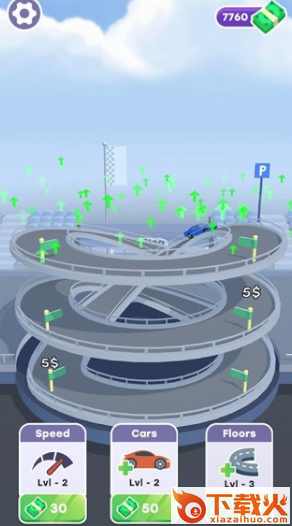 螺旋漂移是一款螺旋赛道模拟经营游戏。游戏中玩家需要经营一处头尾相接的螺旋上升赛道,每一辆车在赛道中驶过一段距离后就可以获得一定的收入,玩家可以通过花费金钱来让车速加快,车道加层或是增加车辆。保证车辆不会撞车并且尽可能的让收入加快以达到收入目标,感兴趣的玩家快来下载体验吧。