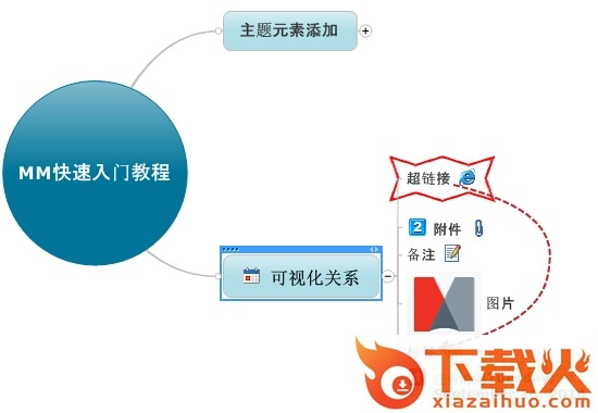 通过菜单插入->导图对象或者标记,可以为主题添加特殊标记来对主题进行编码和分类、使用箭头展现主题之间的关系、使用分界线功能环绕主题组或者使用图像说明导图。