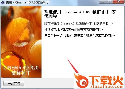 4.运行Cinema 4D R20正式补丁.exe,直接点击下一步即可,等补丁安装完成就可以免费使用c4d r20了