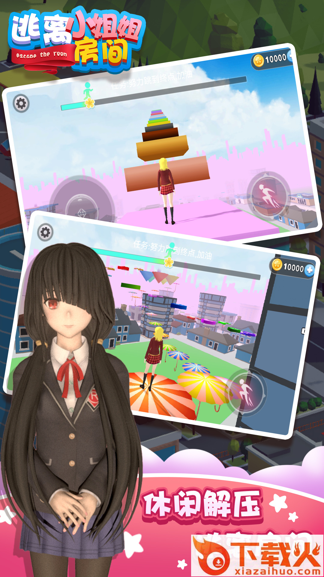 逃离小姐姐房间,画风精致的3D跑酷竞技小游戏。游戏中玩家将加入这个跑酷队伍,解锁更多的冒险地图,在樱花高校开启跑酷大作战,完成你的跑酷对决吧,非常精彩。