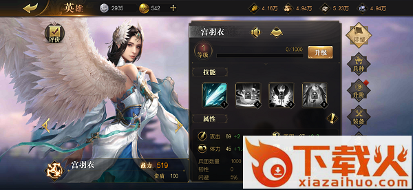 在《九州缥缈录》手游中,宫羽衣可以为场上武将恢复怒气值,并且提高攻速,可谓是百搭型的辅助武将。