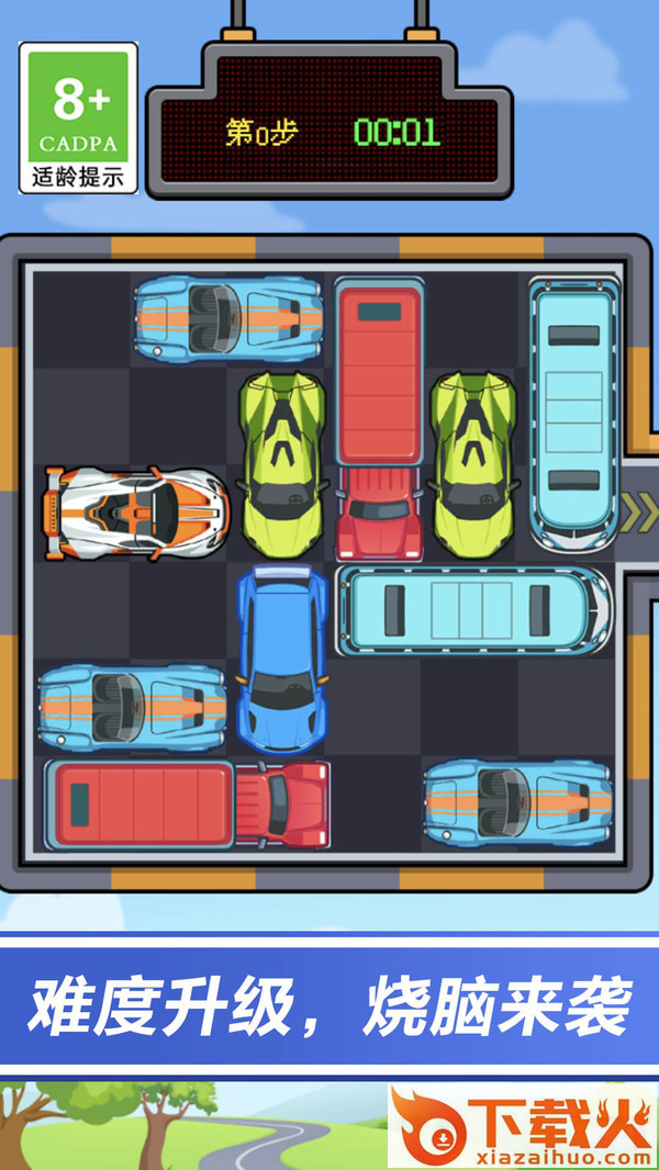 1、通过你灵活的手指操控,画出更多的线路,快速的将更多的车辆迅速的停放到位。