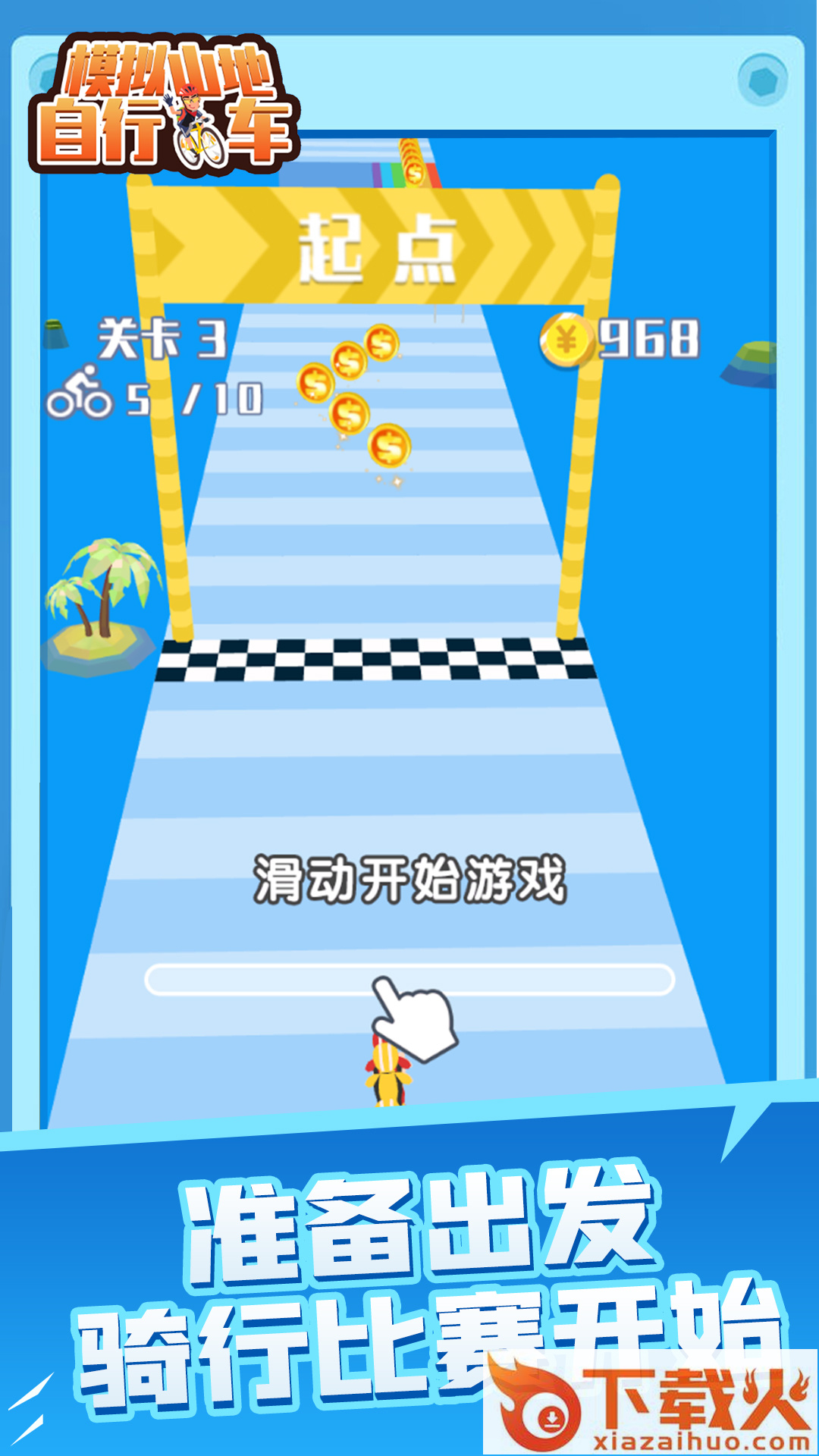 模拟山地自行车,经典的第一人称自行车骑行游戏。游戏中解锁不同的山地自行车,在各个赛道进行竞速狂飙,搜集沿途的金币兑换新的自行车皮肤,完成竞速体验。