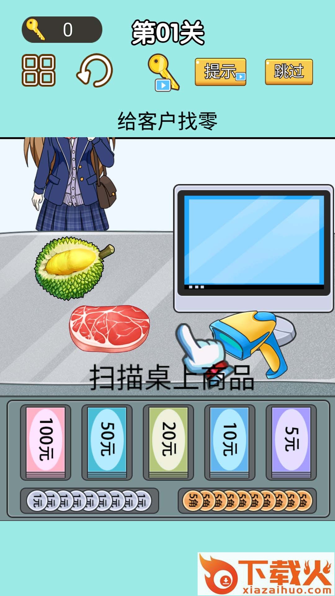 这是一款便利店收银员模拟小游戏,玩家帮助顾客扫描想要购买的商品,并根据顾客交付的现金找零钱退还,游戏极具趣味性,快来试试吧。