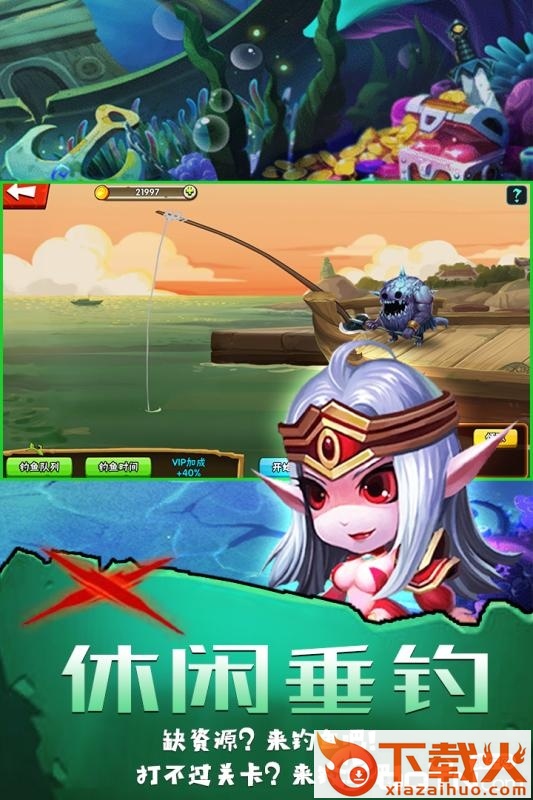 3、休闲钓鱼,独特的社交玩法,给英雄战斗更多私人空间,约朋友垂钓。