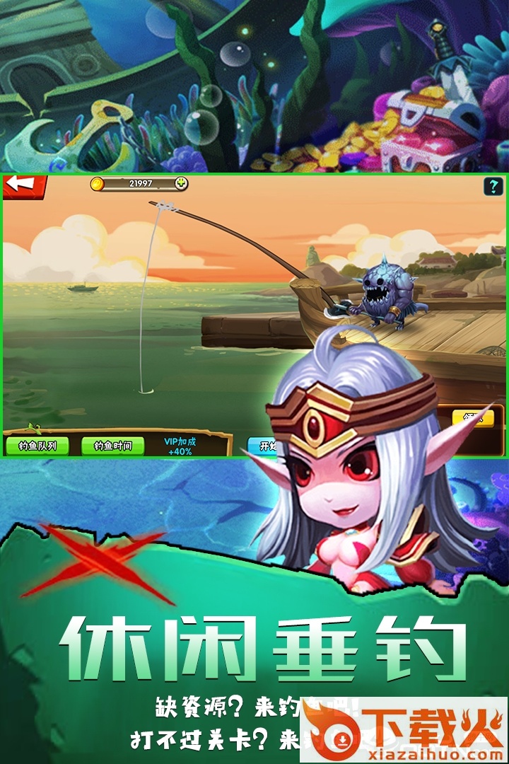 非常规的卡牌游戏,里面有卡牌游戏常见的各种玩法,也有一些不常见的玩法。常见的通关、副本、公会战、竞技场都有。不常见的校场、钓鱼、探索也有。游戏的核心玩法是搭配阵容并与AI或者其他玩家进行对抗。