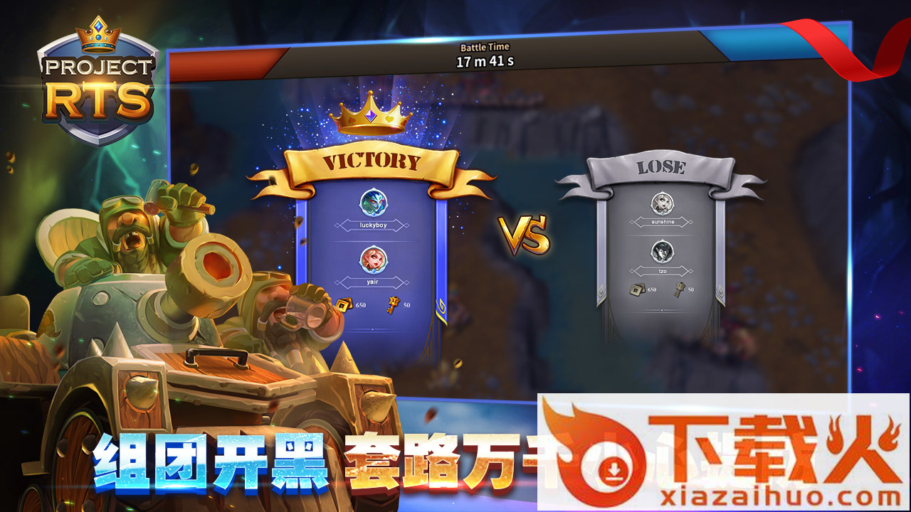 *提供PvP竞技在内的多种游玩模式,战役模式、自由匹配,荣耀竞技场,以及各种小游戏等,同时也可以2V2、3V3组团开黑,研究各种战术套路。