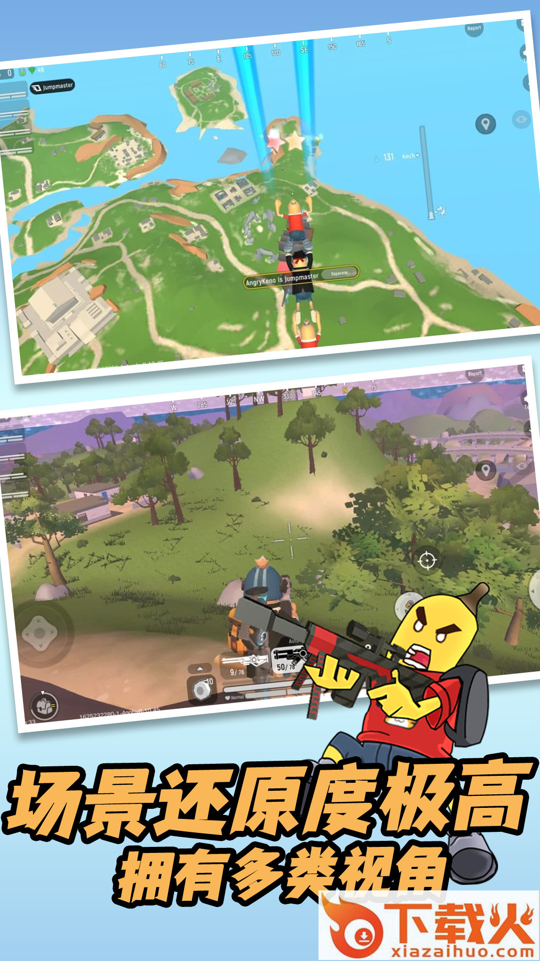 有64平方千米的大地图,有城镇,有野点,有树丛,有草丛,每局支持100名玩家对战。