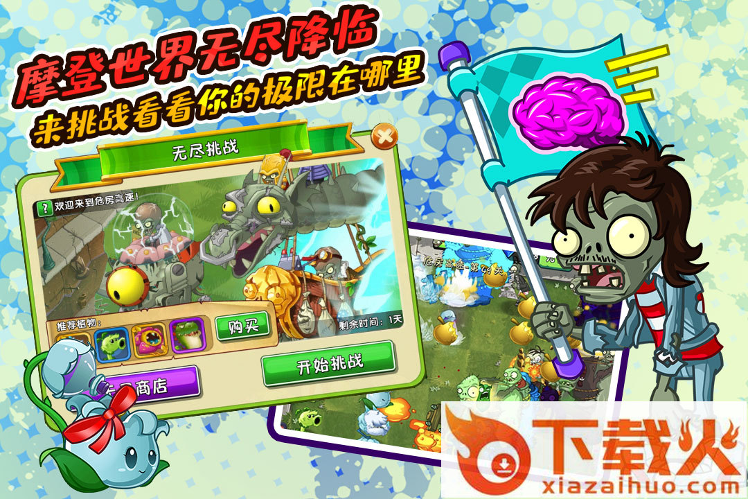 还有就是游戏难度,其实我还是更喜欢一代植物大战僵尸,难度上面没有太多硬求,一般植物摆放上面多一些技巧想要过关不是什么天大的事。而二代就不一样,别地免费送的植物这里就要氪金,不氪金拿到植物有些关卡死活过不去。