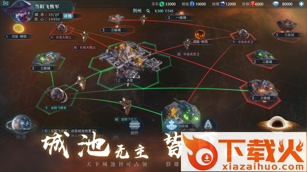 主公将在游戏初期从敌对势力手中夺取一颗行星,并以此为母星,在星球表面建造城池,成为割据一方的诸侯。
