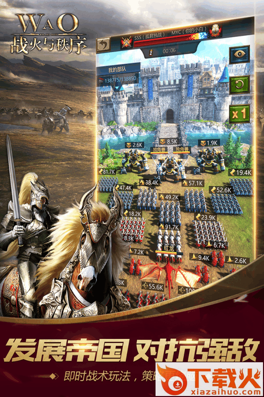 War and Order官方中文版,War and Order(战火与秩序)是Camel Games(壳木游戏)公司推出的一款中世纪魔幻战争题材的集RTS 与SLG 玩法于一身的战争手游,游戏使用unity3D开发而成,画面精美超越过往同类作品,首创即时战术策略玩法,玩家在游戏中要以领主身份建立属于自己的王国,发展城堡,训练自己的军队,保卫领土,掠夺其他玩家的资源,还能联合来自全球不同国家的小伙伴们一起主宰世界,问鼎皇权。