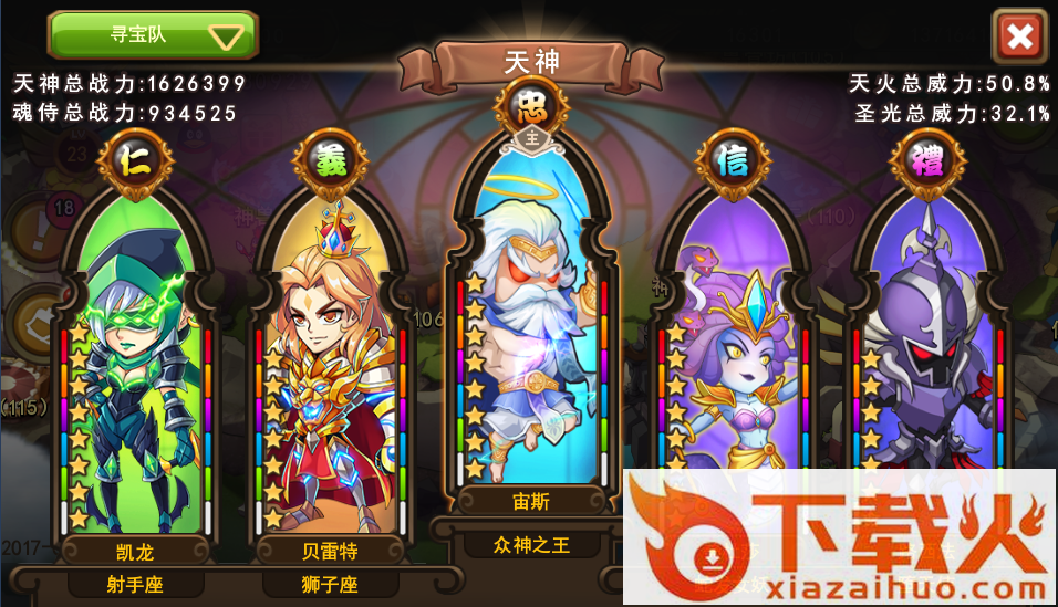 目前为止,天神的个数接近50个,技能种类超过70种。在PVP战斗中,使用不同的天神组合,可以实现各种策略,小编介绍几种主流的组合,进攻参考: