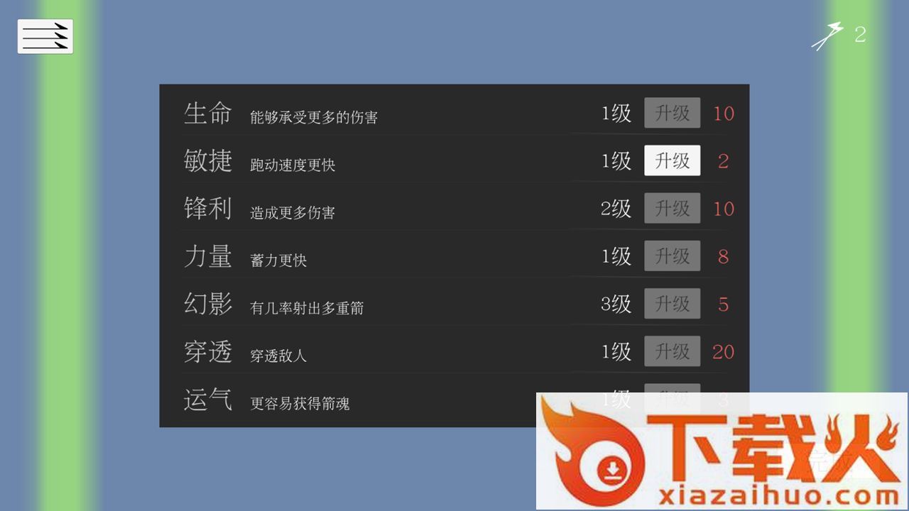 3、单击以拖动手指向后拉瞄准并释放以升级弓箭。