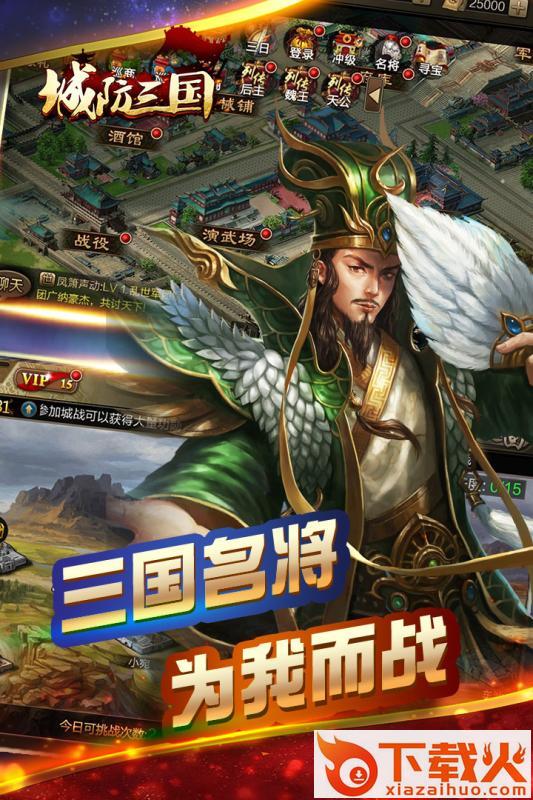 乱世之中,群雄争霸,硝烟四起!《城防三国》将带您回到那个动荡之世,还原收复城池中对阵厮杀、横扫千军的宏大场面!阁下将亲手完成武将的收集、训练、战斗,一展英明统帅之才!
