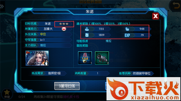 战役在指挥官达到12级时解锁,每个战役关卡有3个目标,完成目标可以获得星星,星级越高奖励越丰厚。每挑战一次战役需要消耗1点能量,每隔1小时可以恢复1点能量,能量上限为12点,所以准时上线挑战战役可以保证足够的收益。(能量用完可以花钻石购买哦)