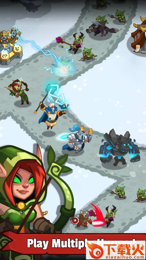 没错,塔防游戏爱好者的你们有福了!游戏中,听到士兵的喊杀声、大炮的轰鸣声,看到魔法师用魔法撕裂敌人,看神箭手百步穿杨。这些都是你所拥有的实力。并且你还会有一个强有力的英雄,她会使用魔法,更好的带领着你的队伍抵御敌人。你是王国的守卫者!拯救那些无助地国民吧。