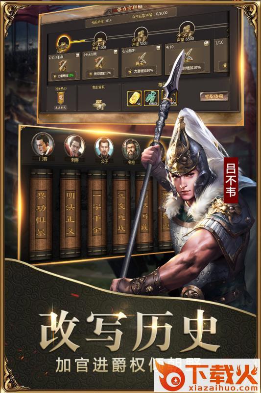 来战国开展你的雄图霸业!荆轲,屈原,高渐离,全数战国名将为你所用;重度烧脑策略拒绝氪金为王,讲究兵法的世代,巧施奇策就能以少胜多以弱胜强;最纯正的国战玩法,占地称王受万民朝拜!时势造英雄,你是以德服人还是奸雄当道?体验智谋天下的战国时代,快来扫荡七国成为天下共主!