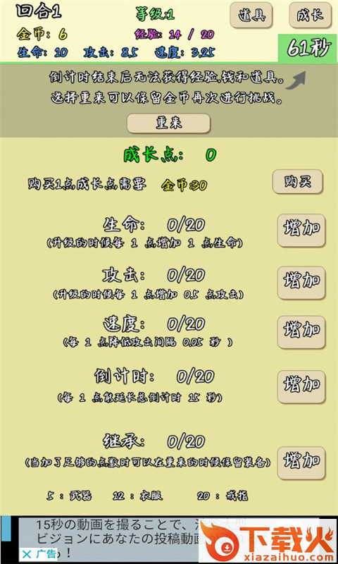发生的战斗是全自动的,玩家只需要使用战斗获得的金币提升自己,在一轮一轮的循环中越辩越强,从而爬到更高的塔。