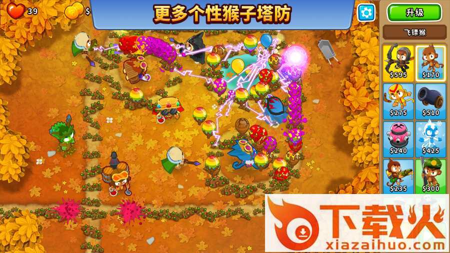 充分利用各种猴子塔、升级、英雄和激活技能搭建完美的防线,击破每一个出现的气球
