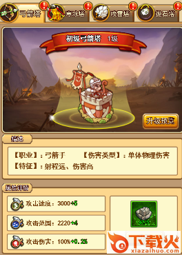 弓箭塔:【特征】射程远、伤害高,【伤害类型】单体物理伤害