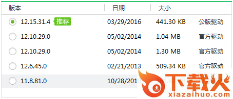 这里面就有显卡驱动的更新选项,找到显卡那一行,点击小红圈处,这时会弹出好多版本,类似如下图: