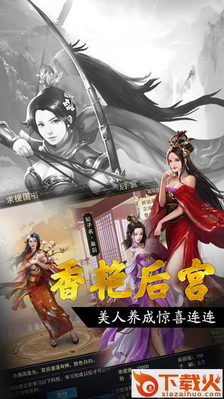结识美人,互动、赏赐、生育子嗣,三宫六院,约定今生。妃子美丽值、亲密度属性以及专属妃子技能,影响国力提升以及子嗣能力。