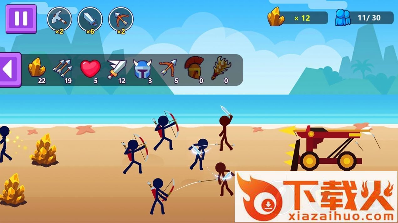 火柴人的崛起游戏是一款策略性极强的放置塔防游戏。我们将成为火柴人国家的指挥官,我们要带领自己的军团抵御敌人的侵扰,我们可以用挖掘出来的紫色钻石来训练自己的士兵,提升等级和技能,这样才能够更加轻松的击败敌人的攻击,才能够更加勇猛的保卫自己的国家,你做好准备了吗?现在就加入这场火柴人保卫战吧!