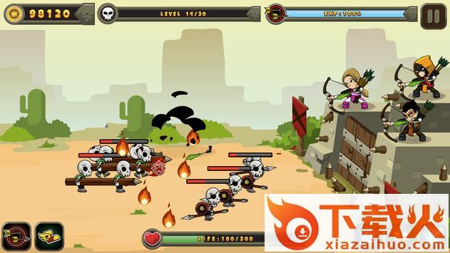 王国防御骷髅游戏是一款好玩的王国策略塔防战斗类游戏,成群的骷髅开始入侵你的王国,你需要建造强大的防御来保卫自己的王国,将不同的弓箭手组合起来打造强大的防御,打造强大的防线帮助自己干掉可怕的骷髅!