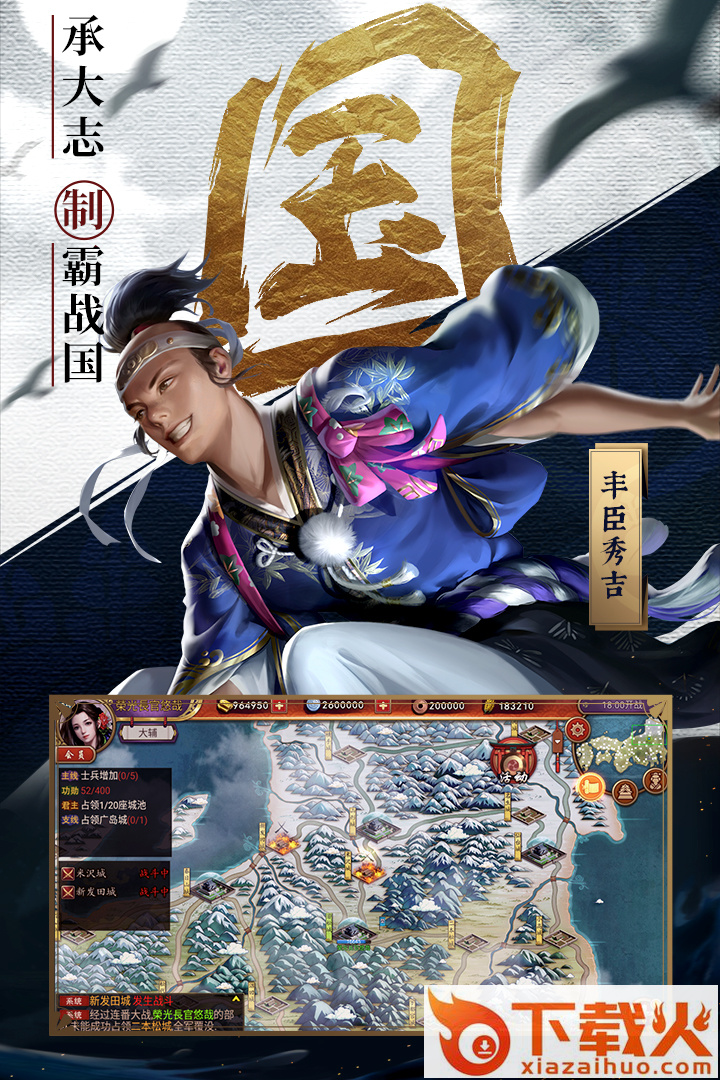 2、数百位战国名将等你招募,文韬武略汇聚一堂。天下势力割据,争夺无处不在,谁能率先再现历史荣光?