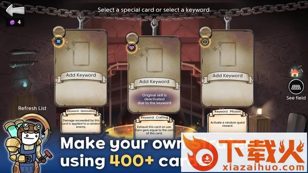 3、玩家能够自由的使用很多不同的卡牌,在战斗中使用各种道具帮助自己。