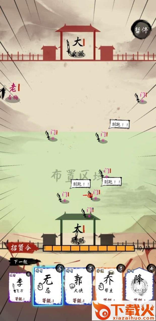 汉字群侠传,一款汉字为主题的策略对抗演习。游戏中玩家将加入这场对战,抽取不同的汉字英雄,搭配技能出击,消灭一波波来袭的对手,完成整个战斗。...