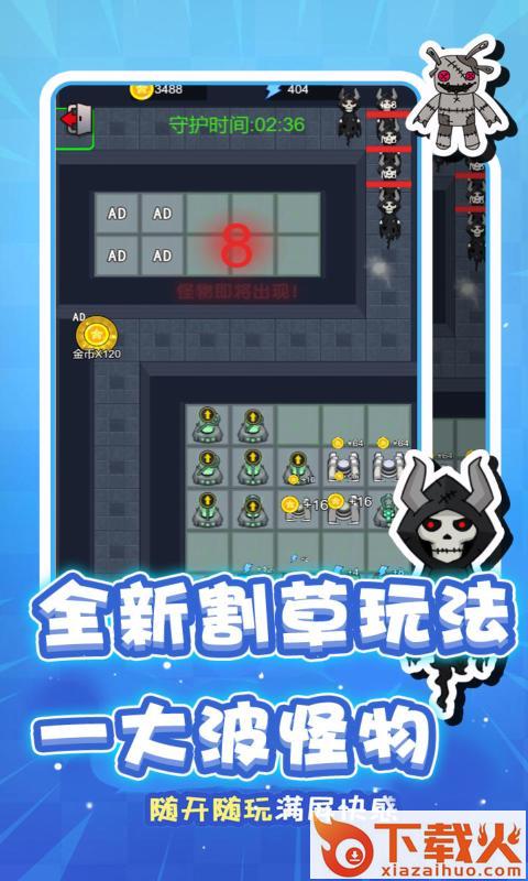 全新割草玩法,一大波怪物,随开随玩满屏快感;