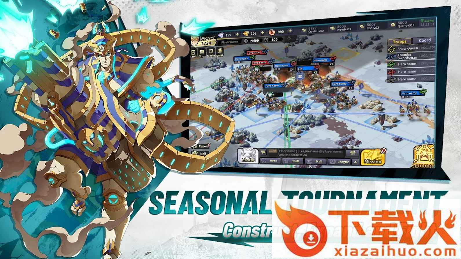 不断招募英雄来充实军营,结合各种武器不断提升实力,获得一次次胜利;