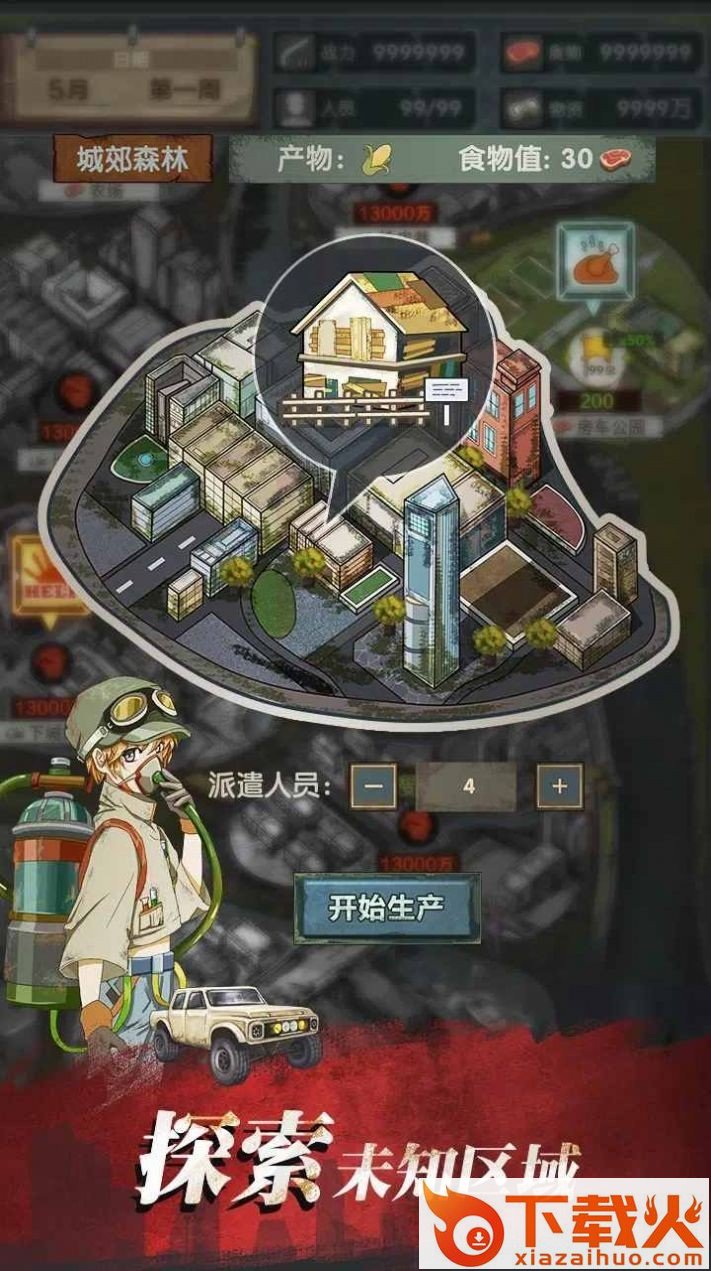 3、修建牢固存活碉堡,抵御僵尸围堵,搜集武器装备和原材料,支持你的存活。