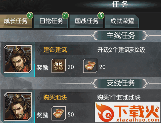 任务分为:成长任务、日常任务、国战任务以及成就系统;