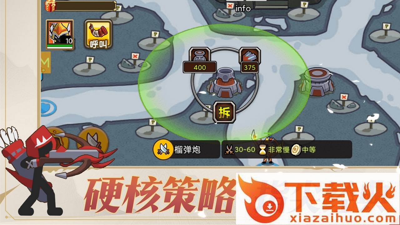 一个策略塔防游戏,也是火柴人战争系列的最新作品,玩家将踏上一段史诗之旅,运筹各种防御塔和法术,保卫自己的王国,抵御其他卑鄙的恶魔!