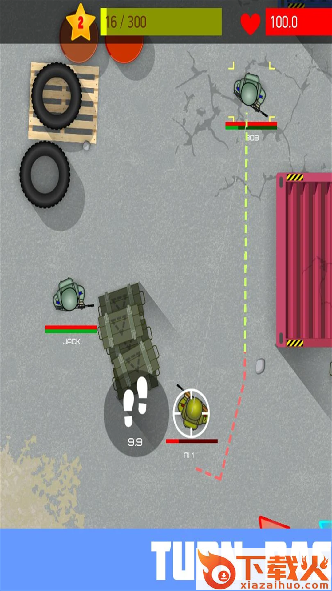 回合制策略游戏。每回合移动士兵,向敌人射击并杀死所有敌人。