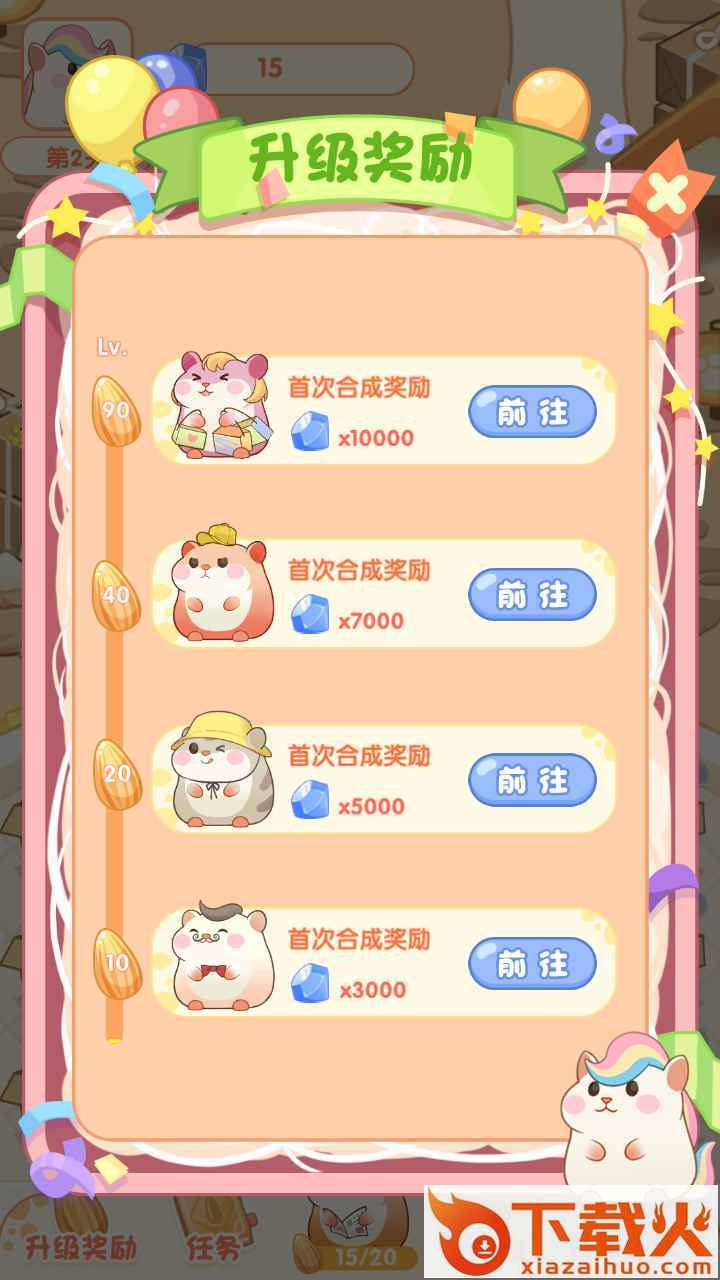 小小仓鼠边玩边赚,这也是一个通过合成塔防来进行守卫的红包游戏,每次升级和过关都能够获得现金红包哦,游戏非常的治愈,评价很高,而且小小仓鼠中所有的红包都能够轻松提现出来。...