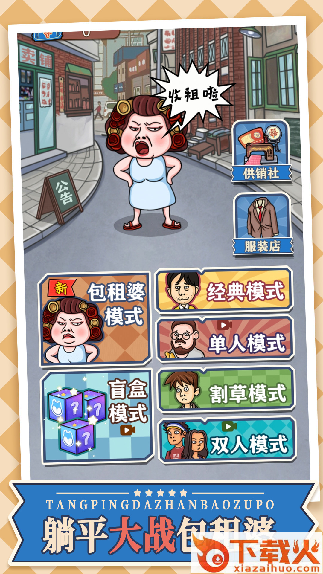 躺平大战包租婆,一款休闲塔防竞技游戏。游戏画风超搞笑,加入包租婆模式,玩家将集结各个小人躺平发育对抗包租婆,躲避催租,爆笑剧情开启,欢乐无限。