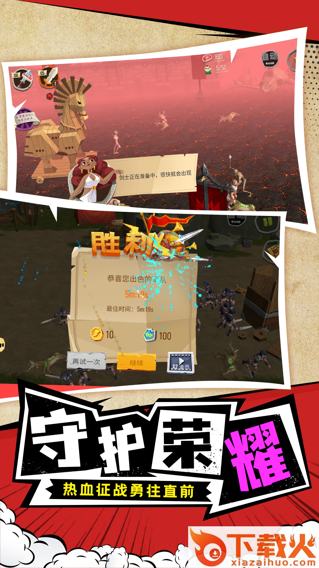 勇士攻防战,卡通战争策略游戏。玩家化身勇士指挥官,召集各路勇士集结,解锁装备武器搭配阵容出击,挑战强大的敌人军团,获取最后战场胜利吧。