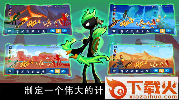 极具策略性的战争策略手游。场景背景清晰自然,画面精致,色彩搭配的十分和谐,指挥你的火柴人勇士进行作战,自定义军队,打造你自己的战斗套牌,打败敌人!